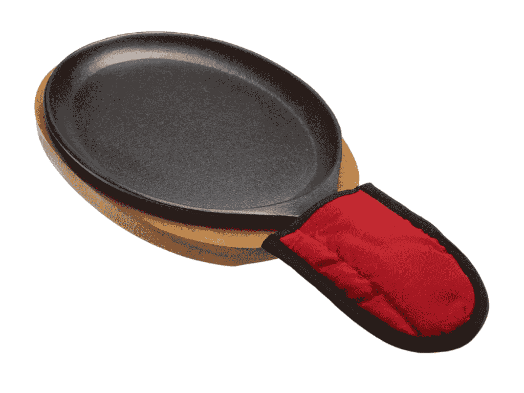 Fajita Plate Set - Pre-seasoned Cast Iron Fajita Pan with Wooden Tray and Hot Mitt by Old Mountain